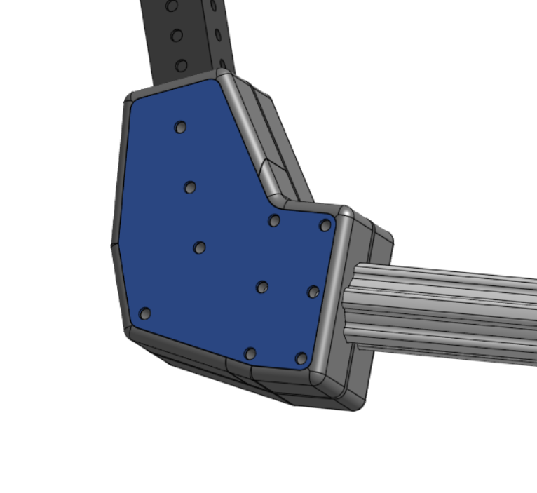 The above 3D print was designed for centering a game piece, it's mounted with square nuts placed into rectangular channels, and bolts are run from the outside to hold it to the mounting plate. This is advantageous because there are no bolts or nuts on the centering surface that the game piece could get caught on.