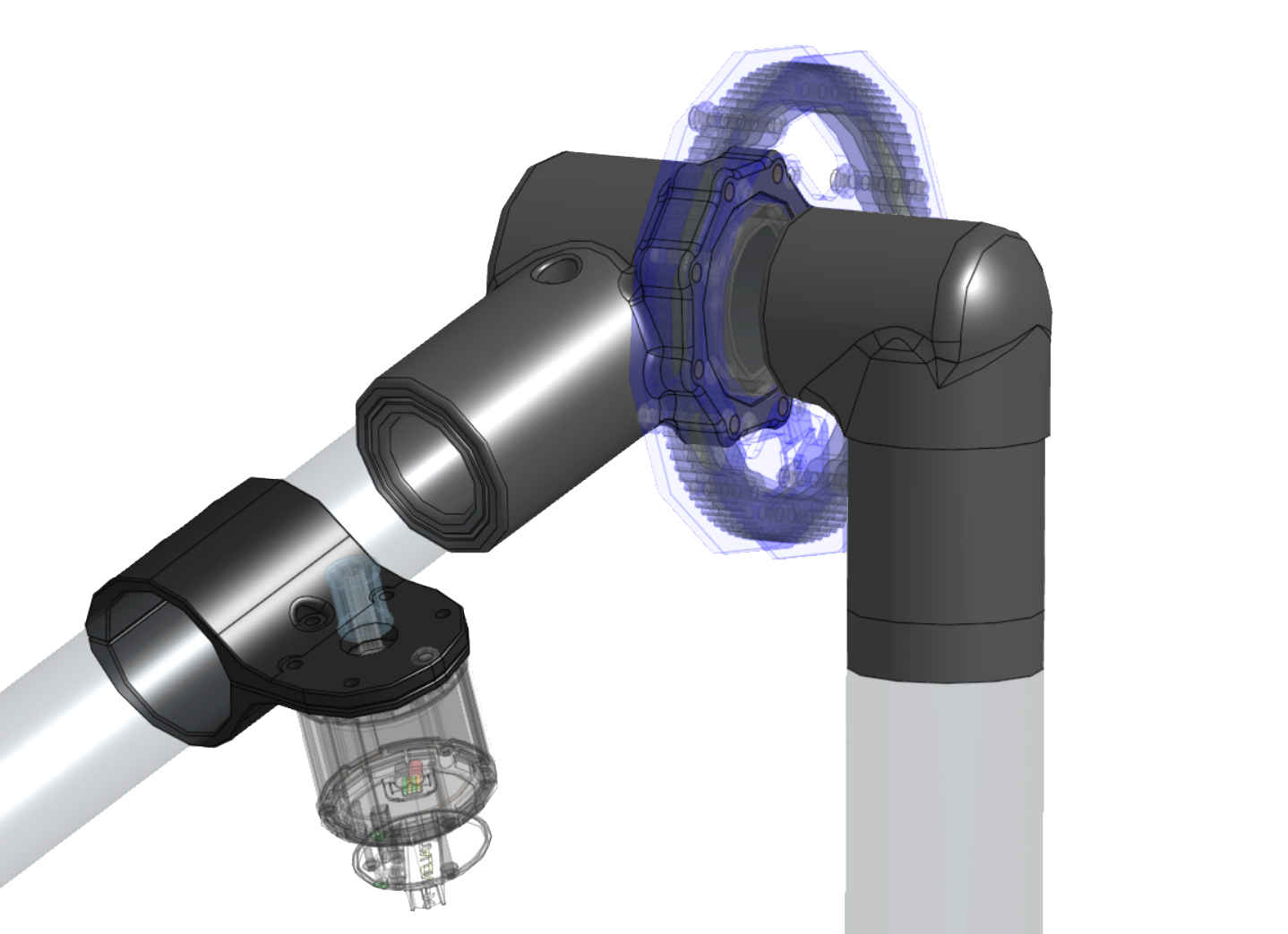 This example above is a perfect use case for 3D printing because it allows for a very precise arm resting angle to be set. This is beneficial for programming to ensure the arm starts in the same position every match. The split design of the part is very beneficial as it can more securely clamp the tubes, with the added benefit of being easier to replace. By splitting the part each piece will have a flat surface that can be oriented down when printing reducing the amount of supports required.