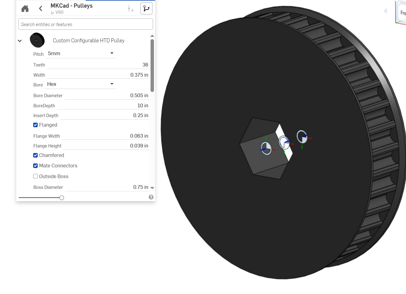 One of the most straightforward use cases for 3D printing in FRC is to make custom spacers for hex shafts. Using MKCAD you can quickly make a different types of spacers and customize the length. These are very easy to print at very low cost. You may notice in the dialogue box an option for additional tolerance (Tolerance Adder). 3D printers generally can produce very precise parts, but factors like thermal expansion, filament inconsistencies, poor calibration, and other error sources can lead to part dimensions that are either larger or smaller than intended. To address this we can add tolerance (gap between two parts) so that parts will fit together well. You likely will need to find the best tolerance your specific printer can achieve, but a reasonable starting tolerance will typically be about 0.004"-0.020" (0.1mm-0.5mm) depending on the type of fit desired (interference, close, clearance). Many online 3D print sites offer test prints to find the minimum tolerance of a given printer/filament combination.