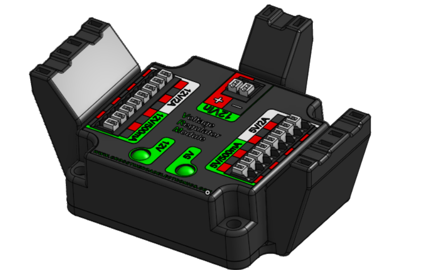 One of the other areas that 3D printing excels at is for adding strain relief to electronics. In the example below there are channels at the top of the part that a zip tie can be fed into to tie down wires entering the VRM. This helps prevent wires from being pulled out of their terminals. This same concept can be applied to any part where wires need to be secured.