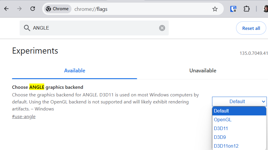 - Finally, Try adjusting your ANGLE graphics backend:
