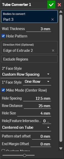- The dimensions of the sketch translate directly into the dimensions of the tube.