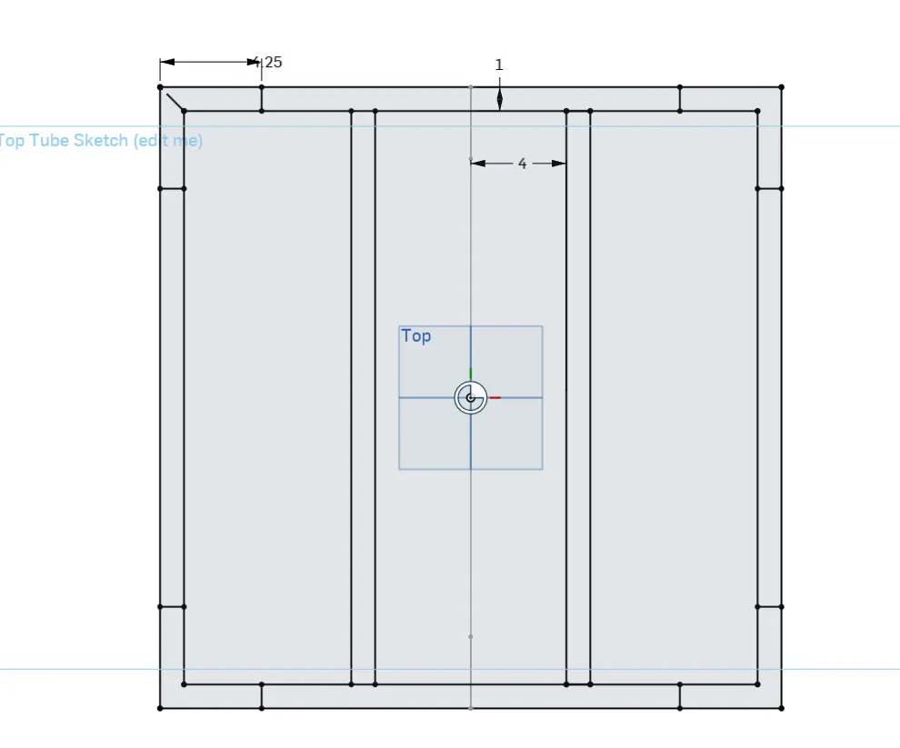 When we sketch, we use rectangles to represent box tubes in 2D, and use dimensions and constraints to lock everything into place.