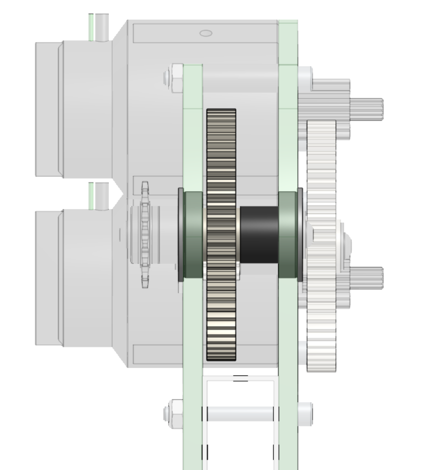 In this exercise, you will be modeling a two motor, two-stage flipped gearbox. These types of gearboxes are referred to as "flipped" because the output shaft points in the opposite direction as the input motors. This style of gearbox can be desired in some situations to meet packaging constraints.