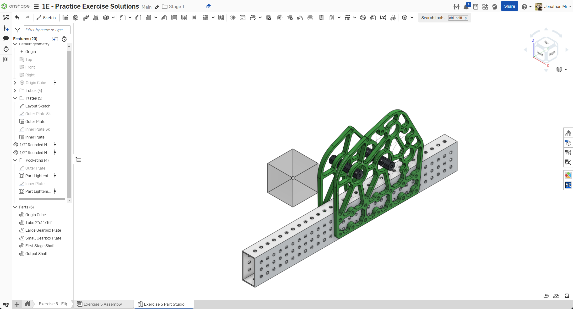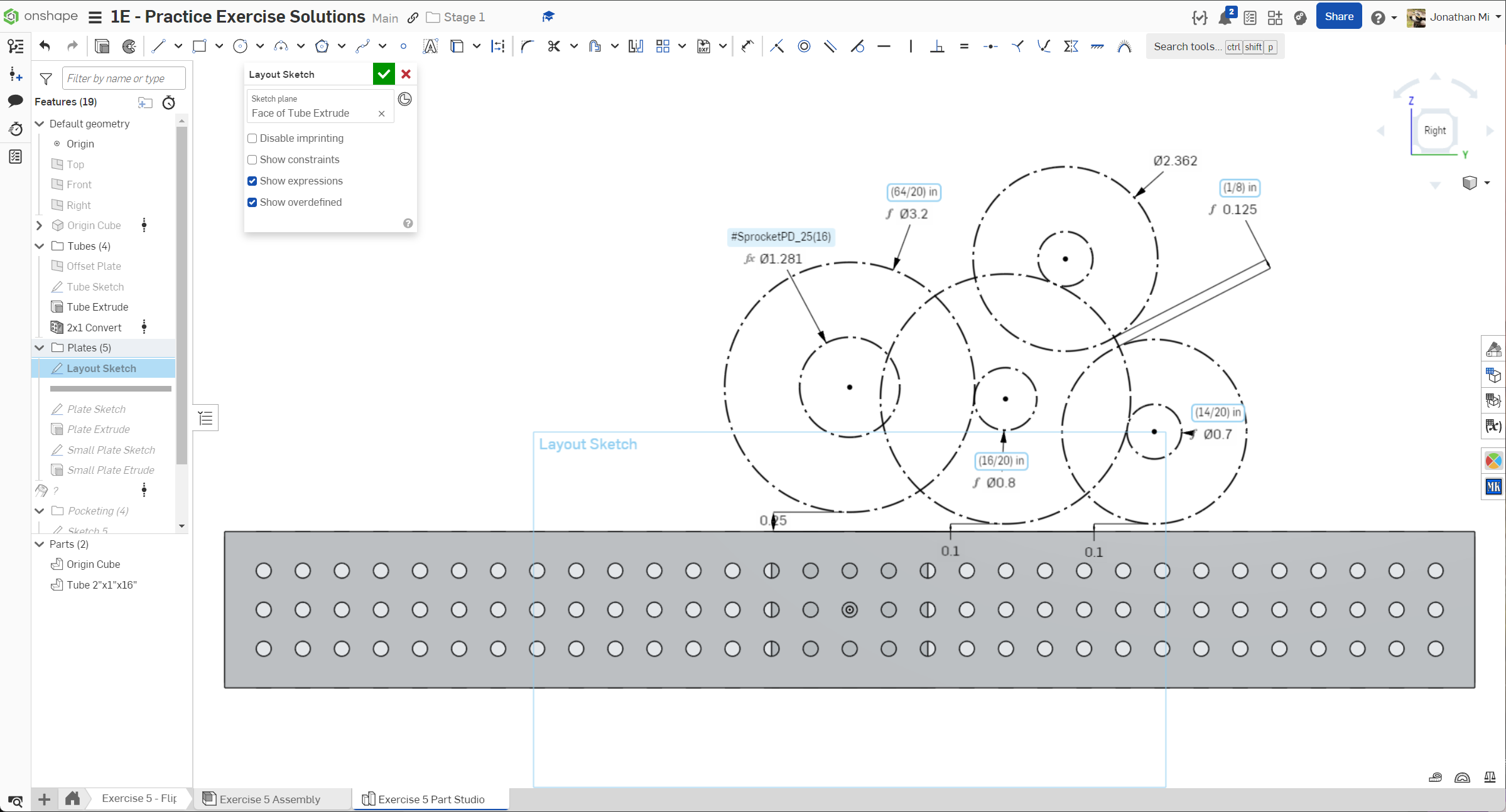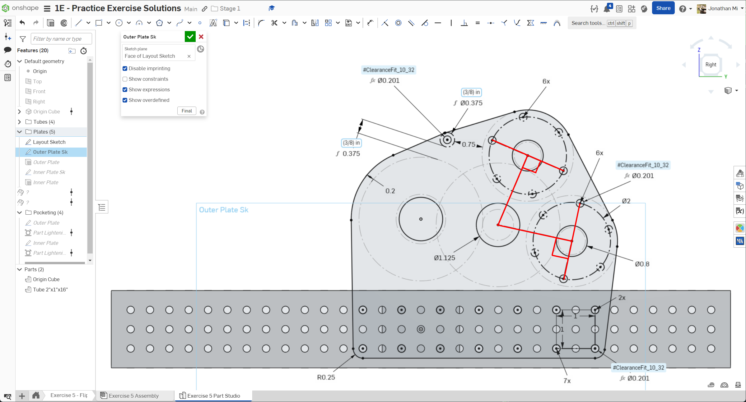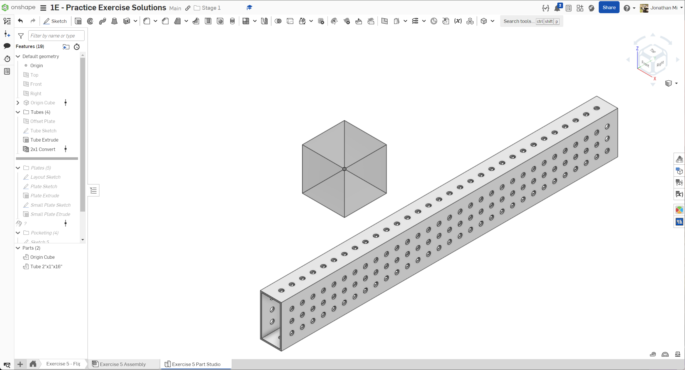 Navigate to the "Exercise #5 Part Studio" tab in your copied document and refer to the solution document to complete the part studio for this exercise. The following instruction slides only provide a general outline and some key details.