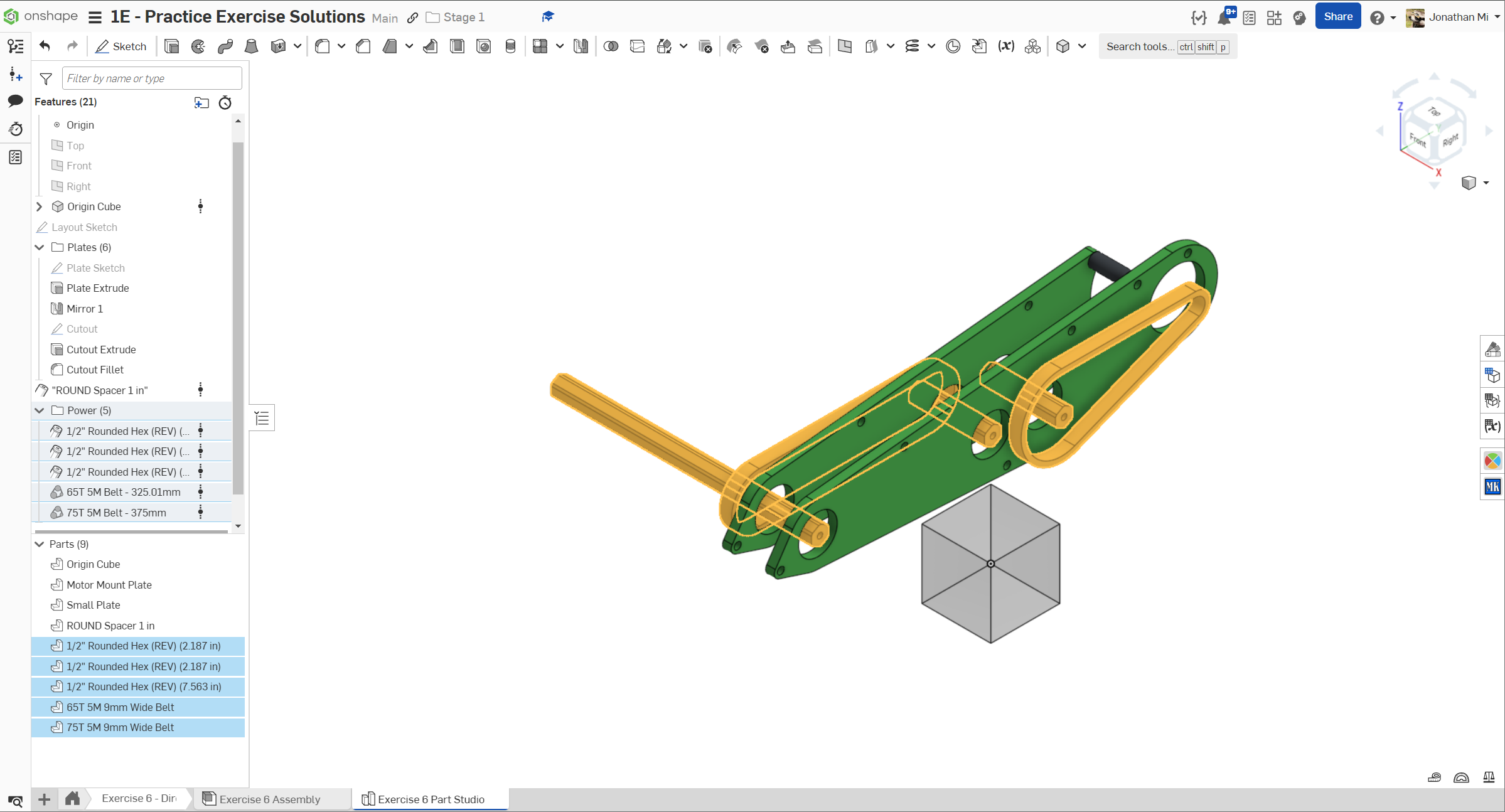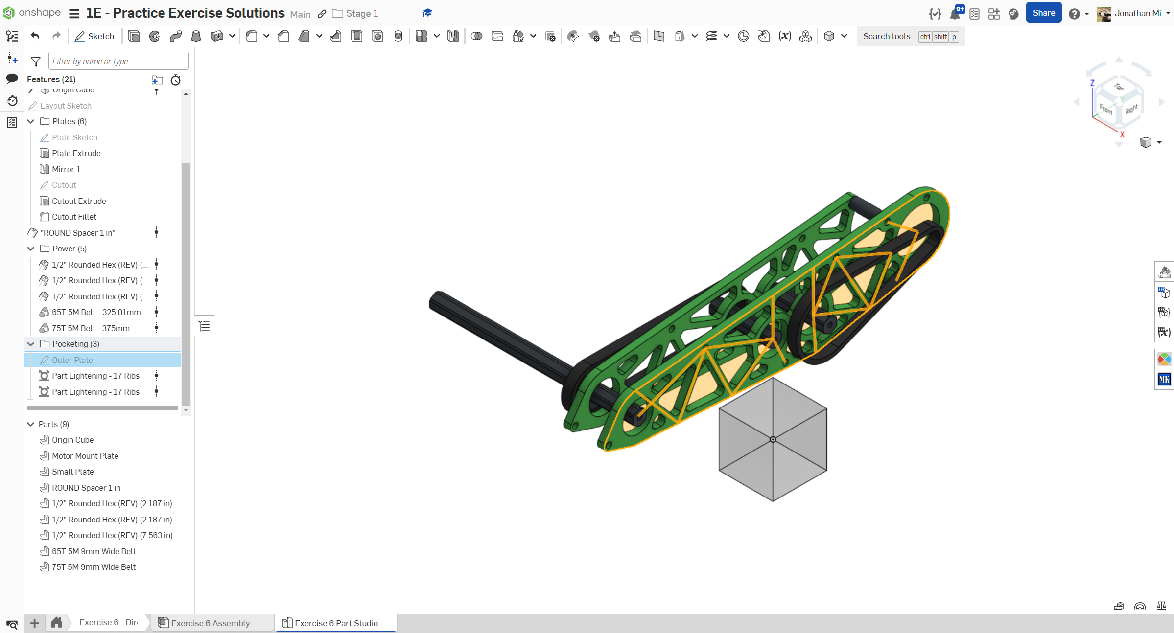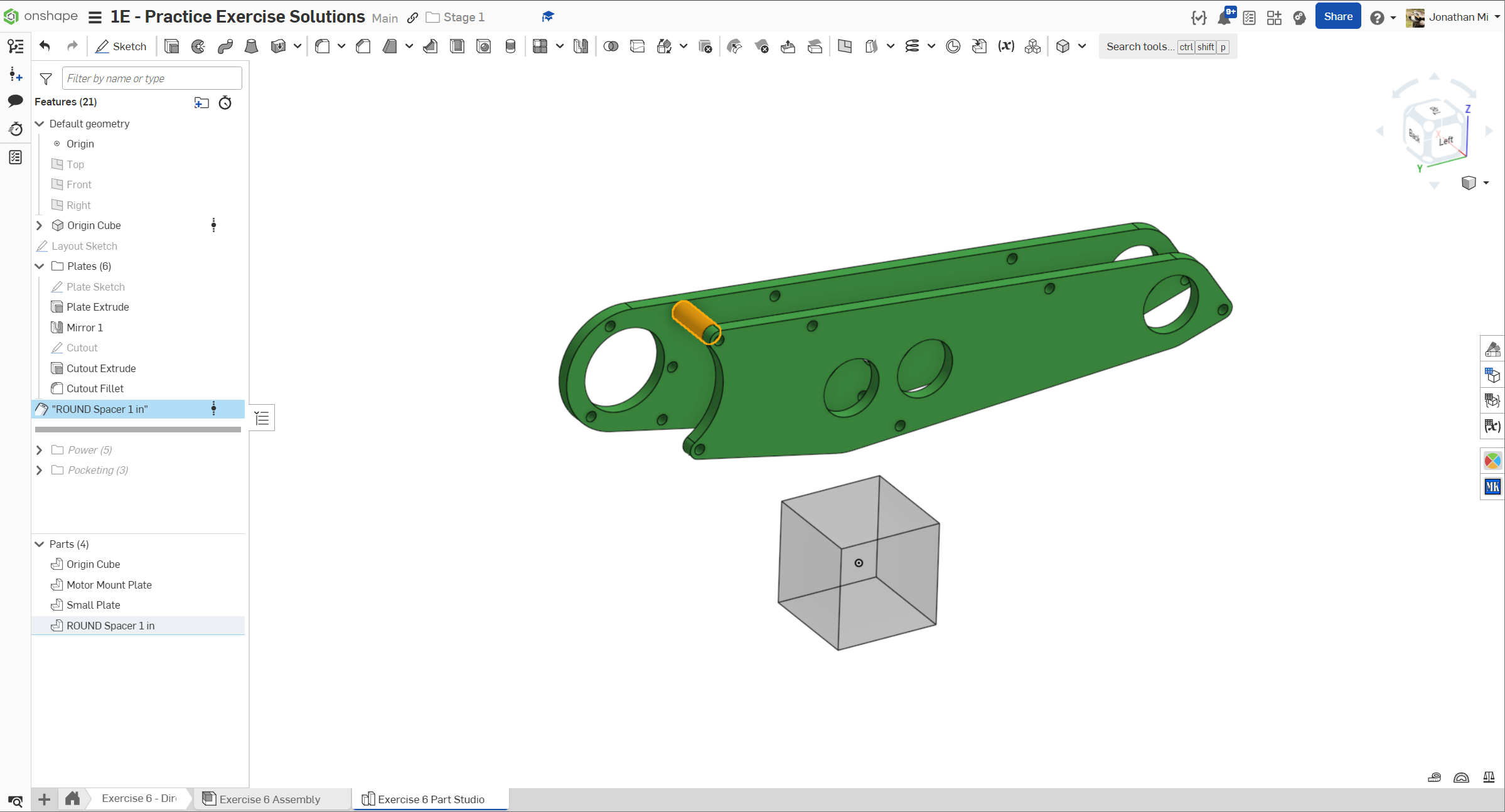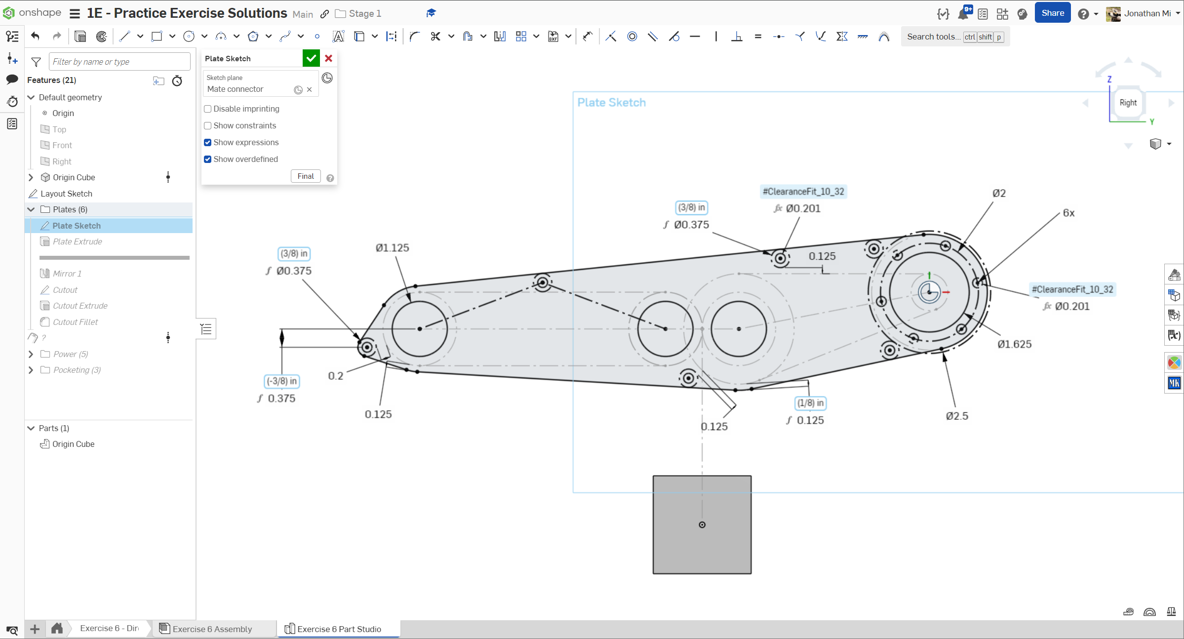 Navigate to the "Exercise #6 Part Studio" tab in your copied document and refer to the solution document to complete the part studio for this exercise. The following instruction slides only provide a general outline and some key details.