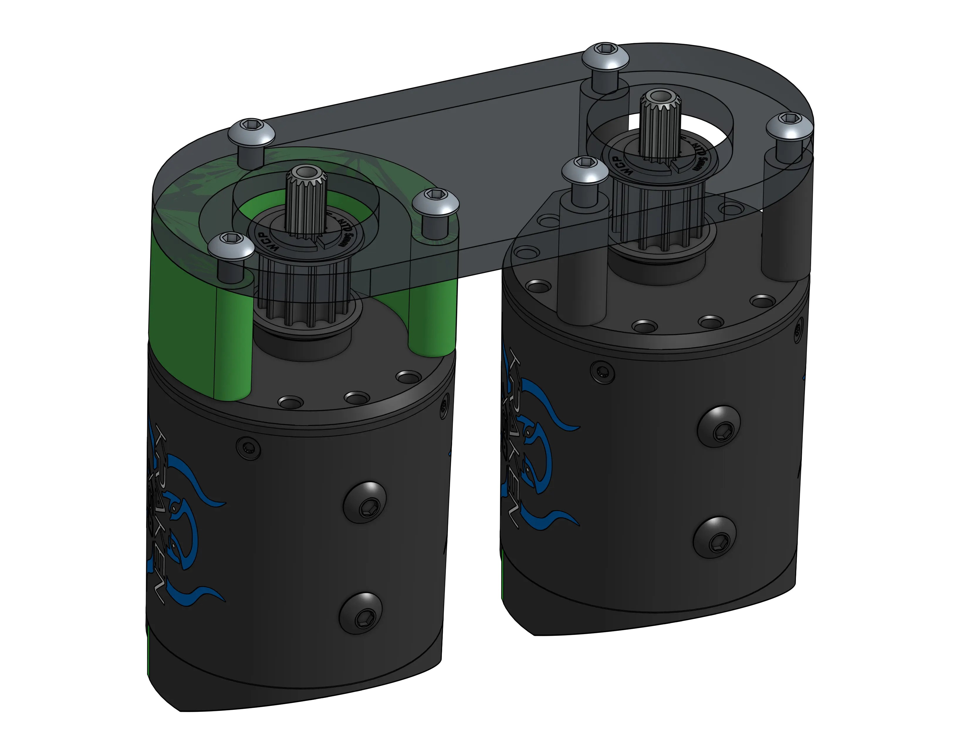 In this exercise, you will be modeling some vertical rollers. This mechanism features the Configurable Rollers assembly and a 3D printed motor spacer. Be sure to pay attention to the layout sketch and assembly mating when modeling.