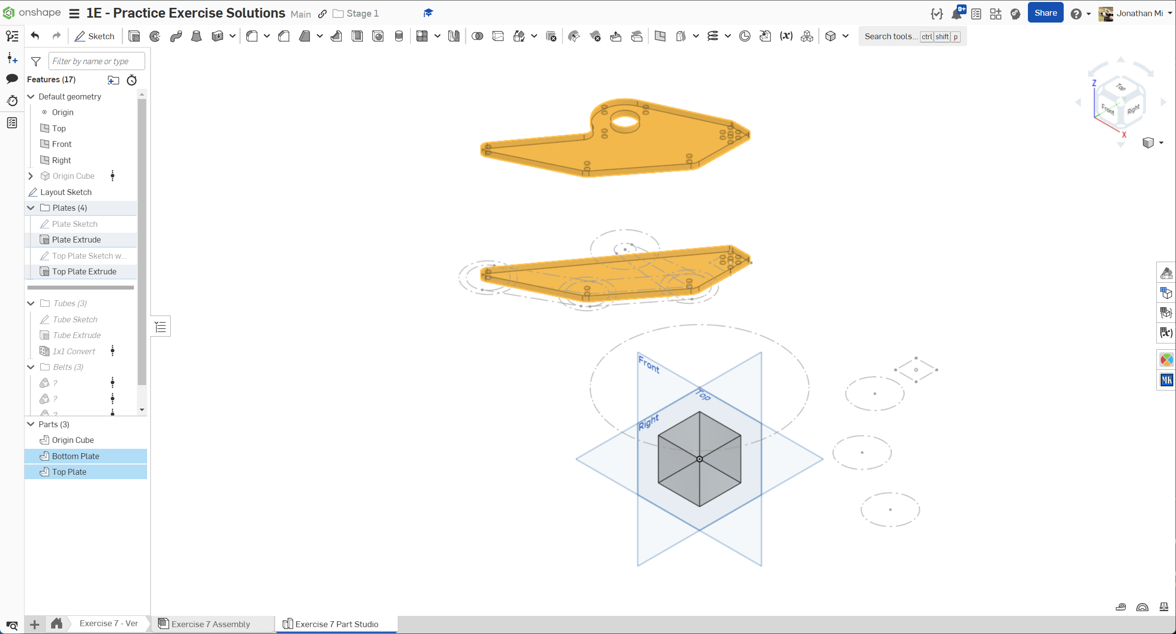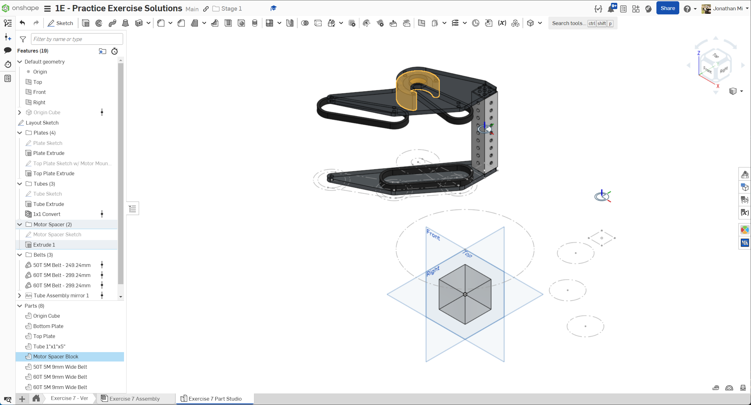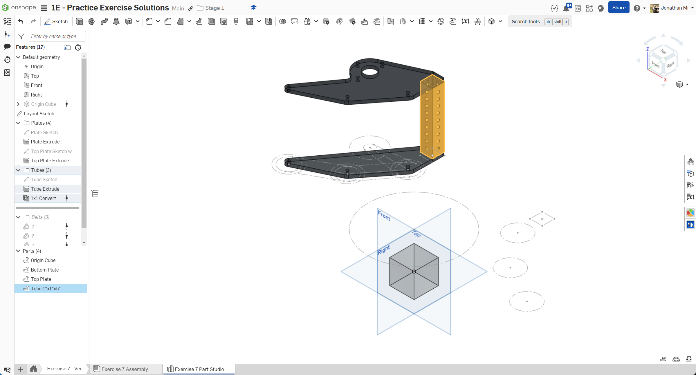 Navigate to the "Exercise #7 Part Studio" tab in your copied document and refer to the solution document to complete the part studio for this exercise. The following instruction slides only provide a general outline and some key details.