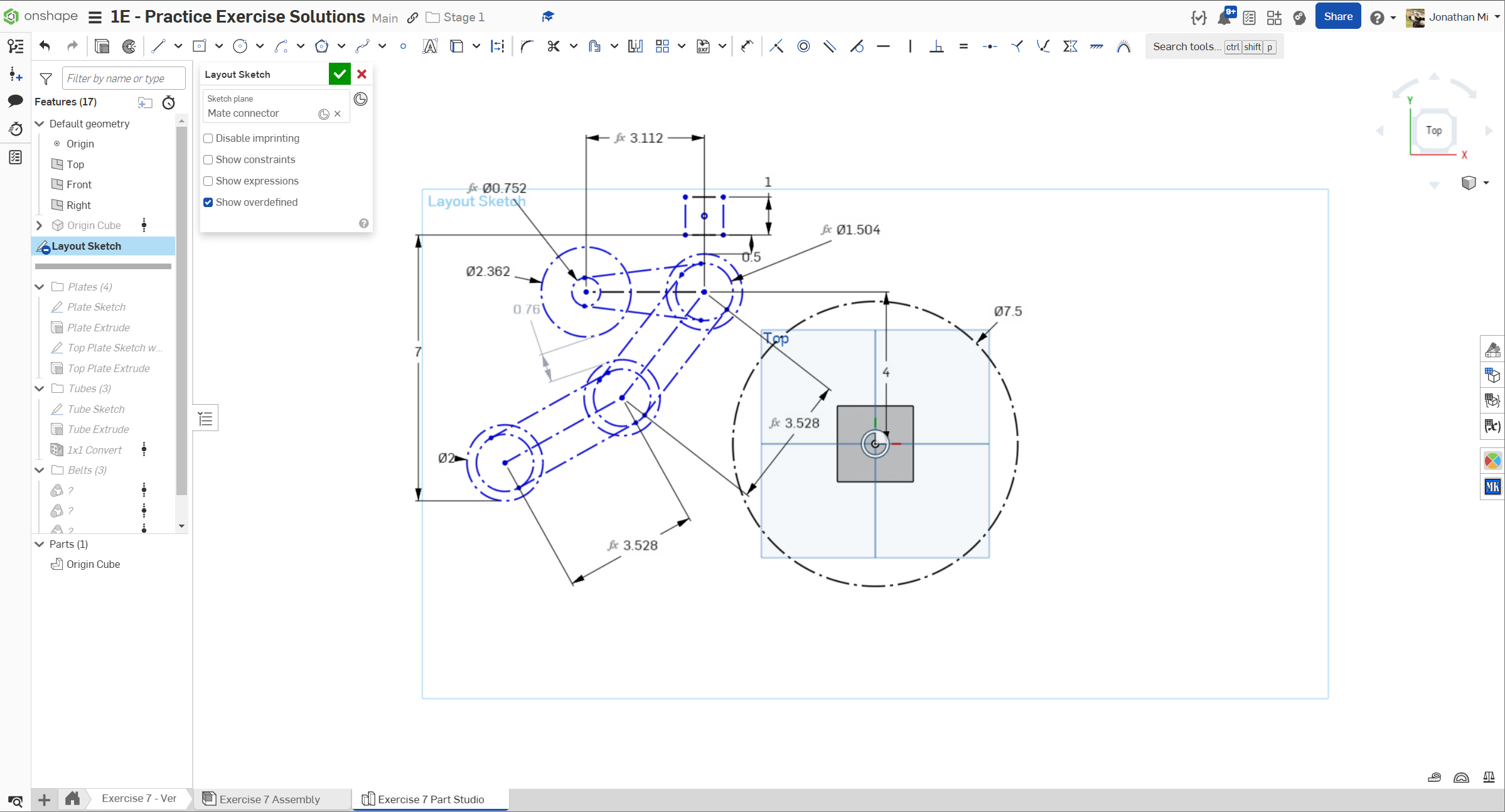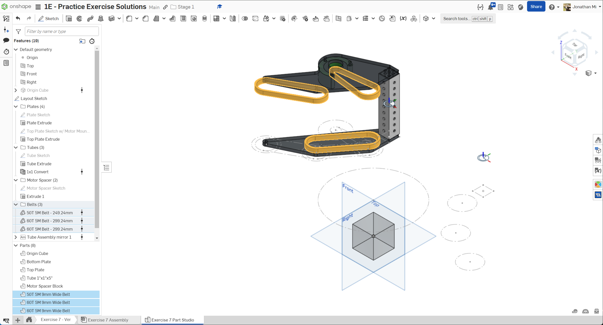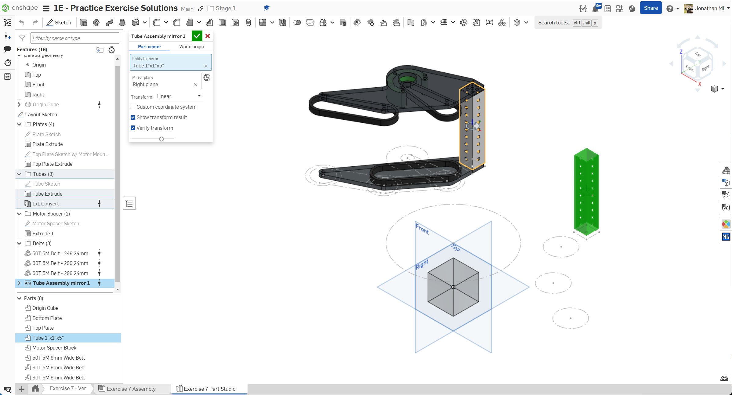 Navigate to the "Exercise #7 Part Studio" tab in your copied document and refer to the solution document to complete the part studio for this exercise. The following instruction slides only provide a general outline and some key details.