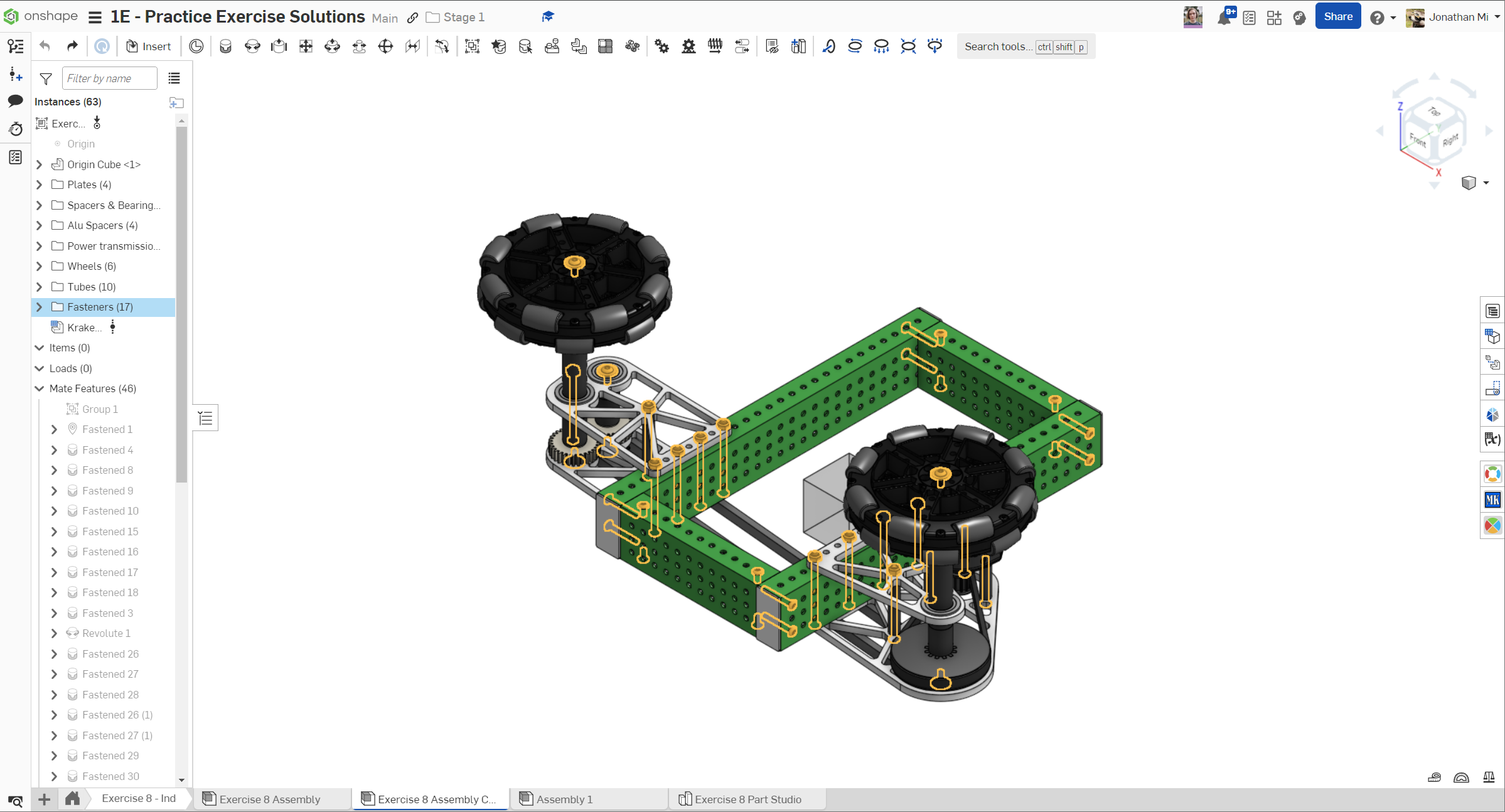 Make sure to have you and/or a more experienced member/mentor of your team review your CAD! Your assembly should have 63 instances.