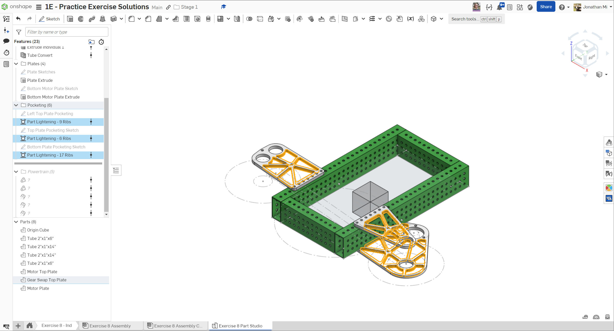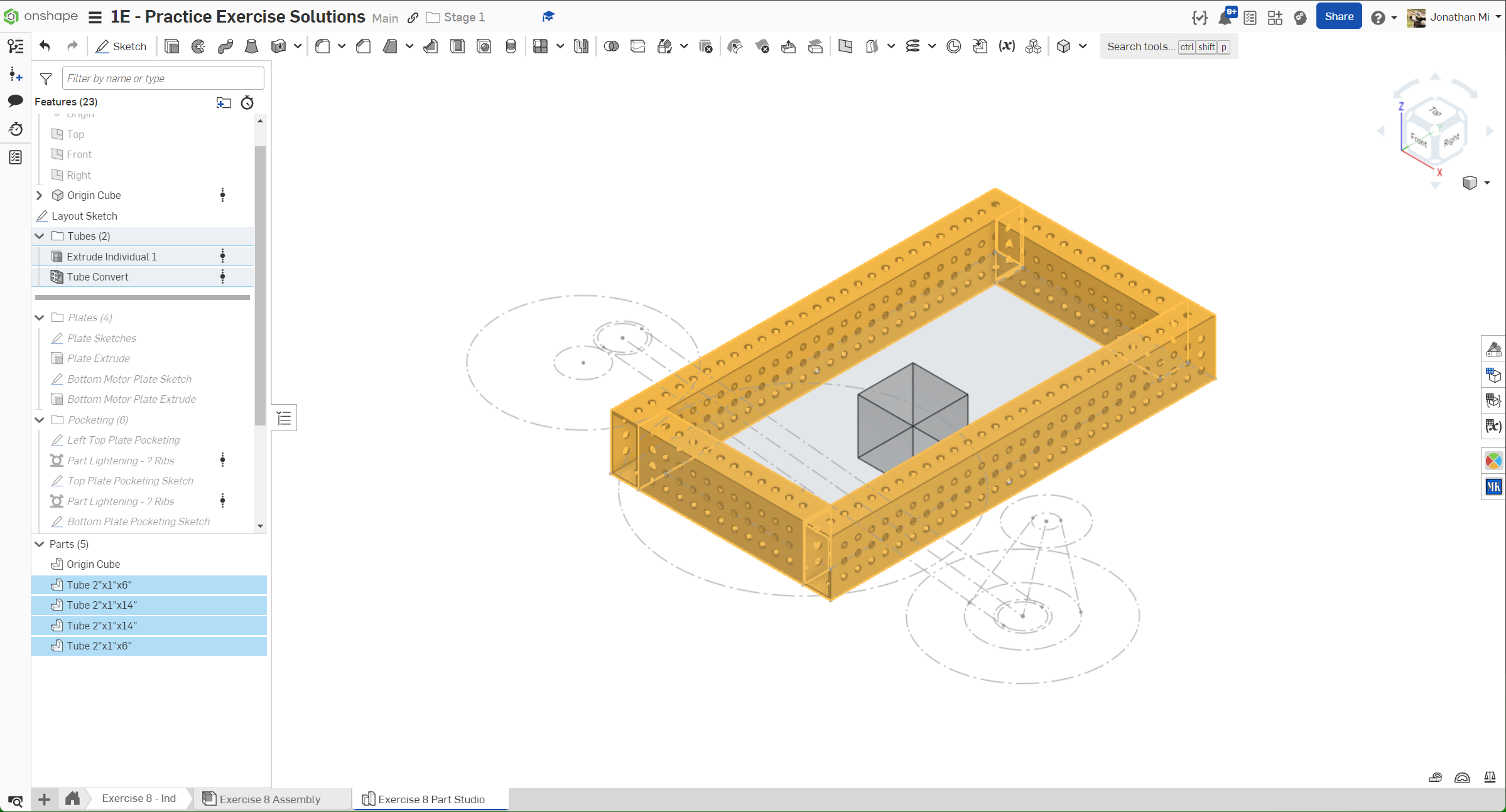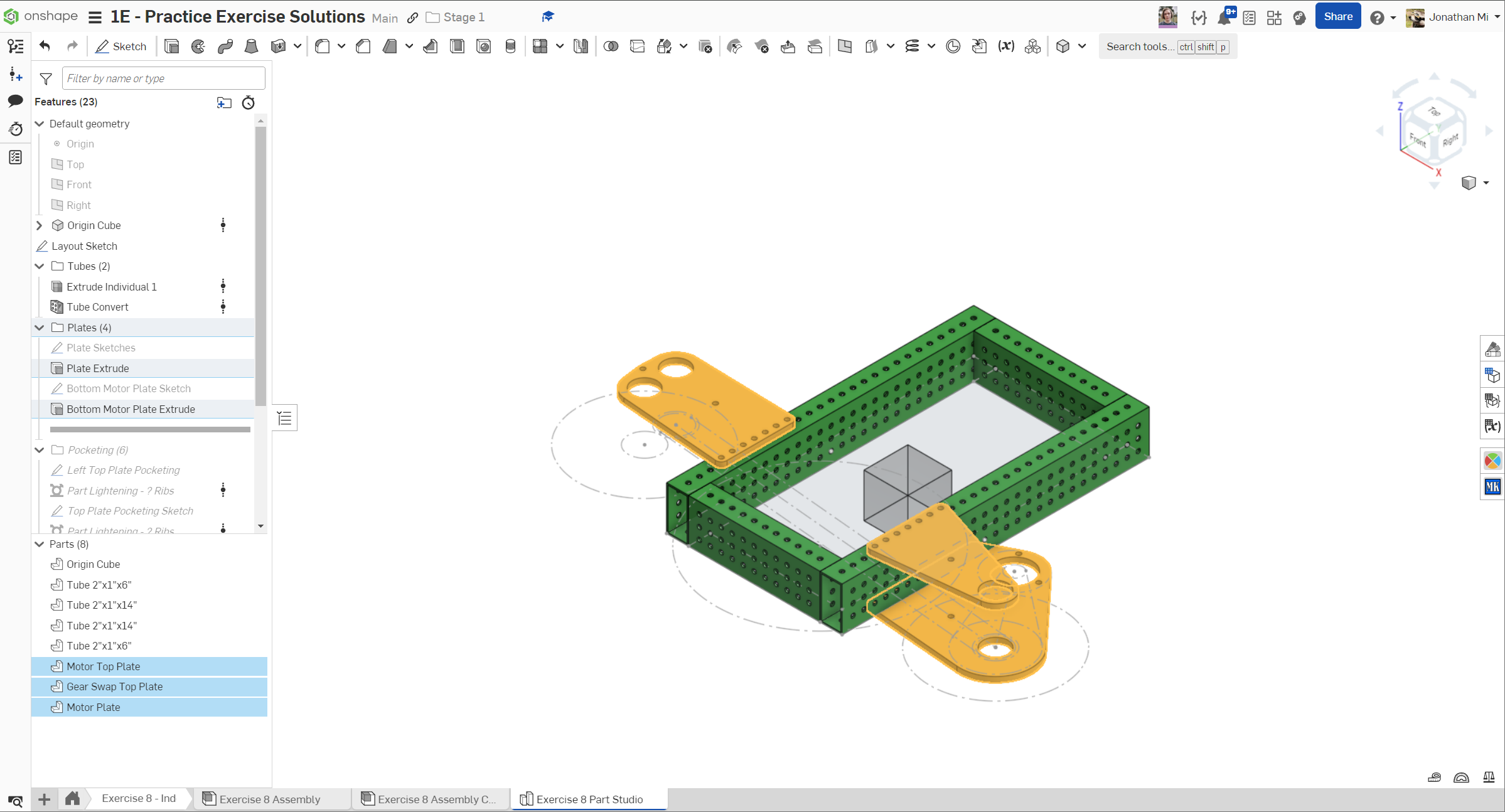 Navigate to the "Exercise #8 Part Studio" tab in your copied document and refer to the solution document to complete the part studio for this exercise. The following instruction slides only provide a general outline and some key details.