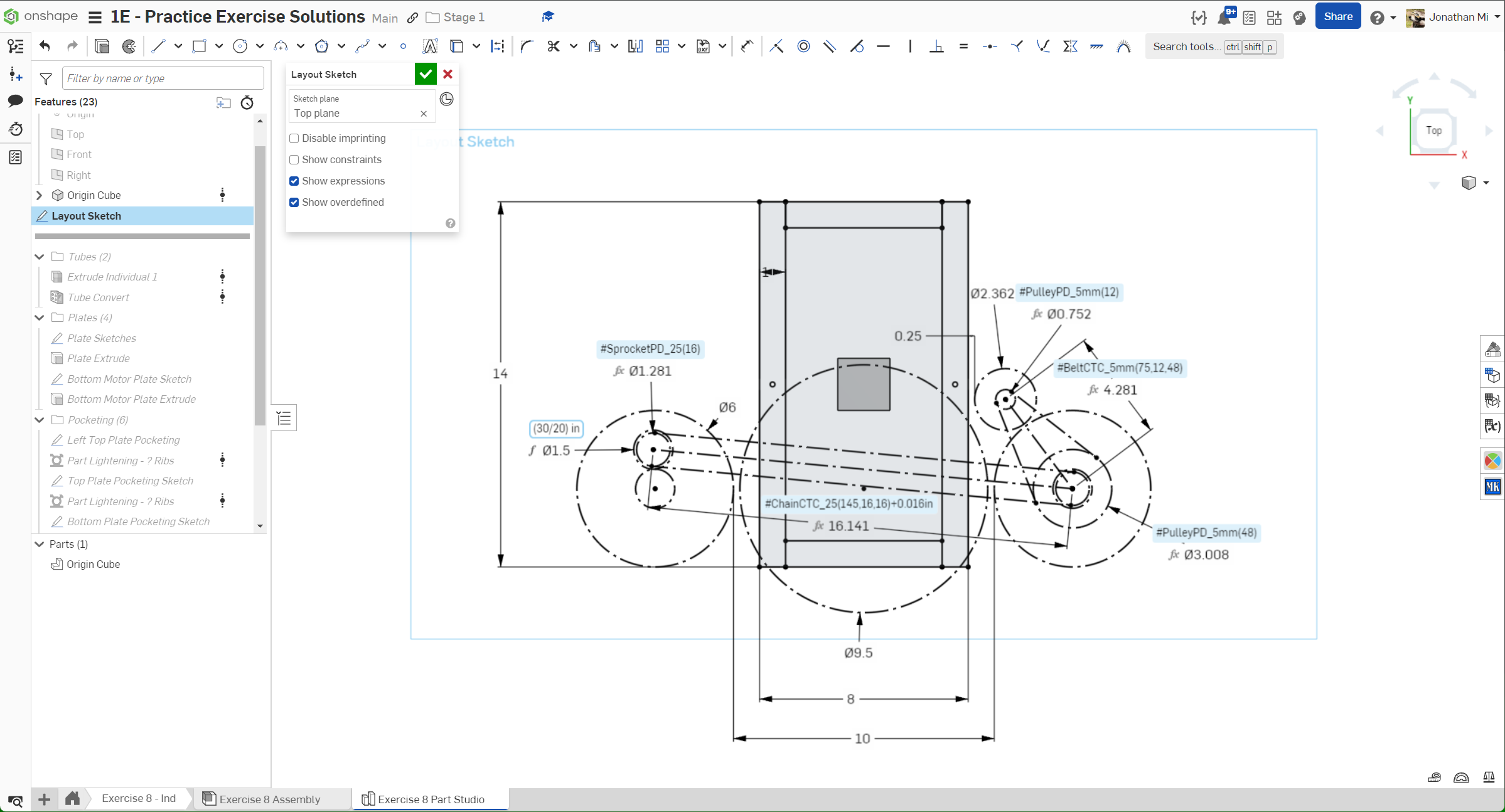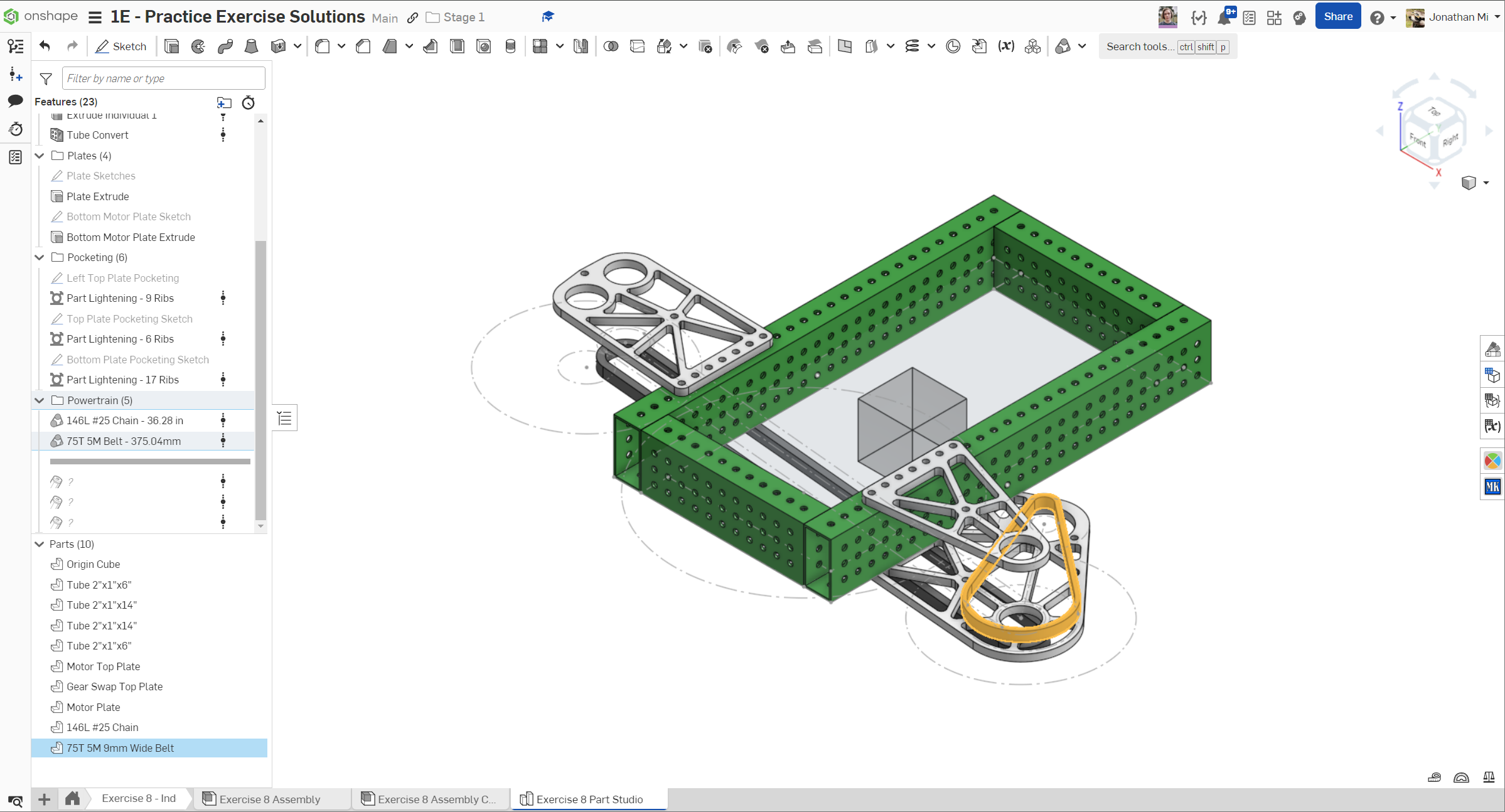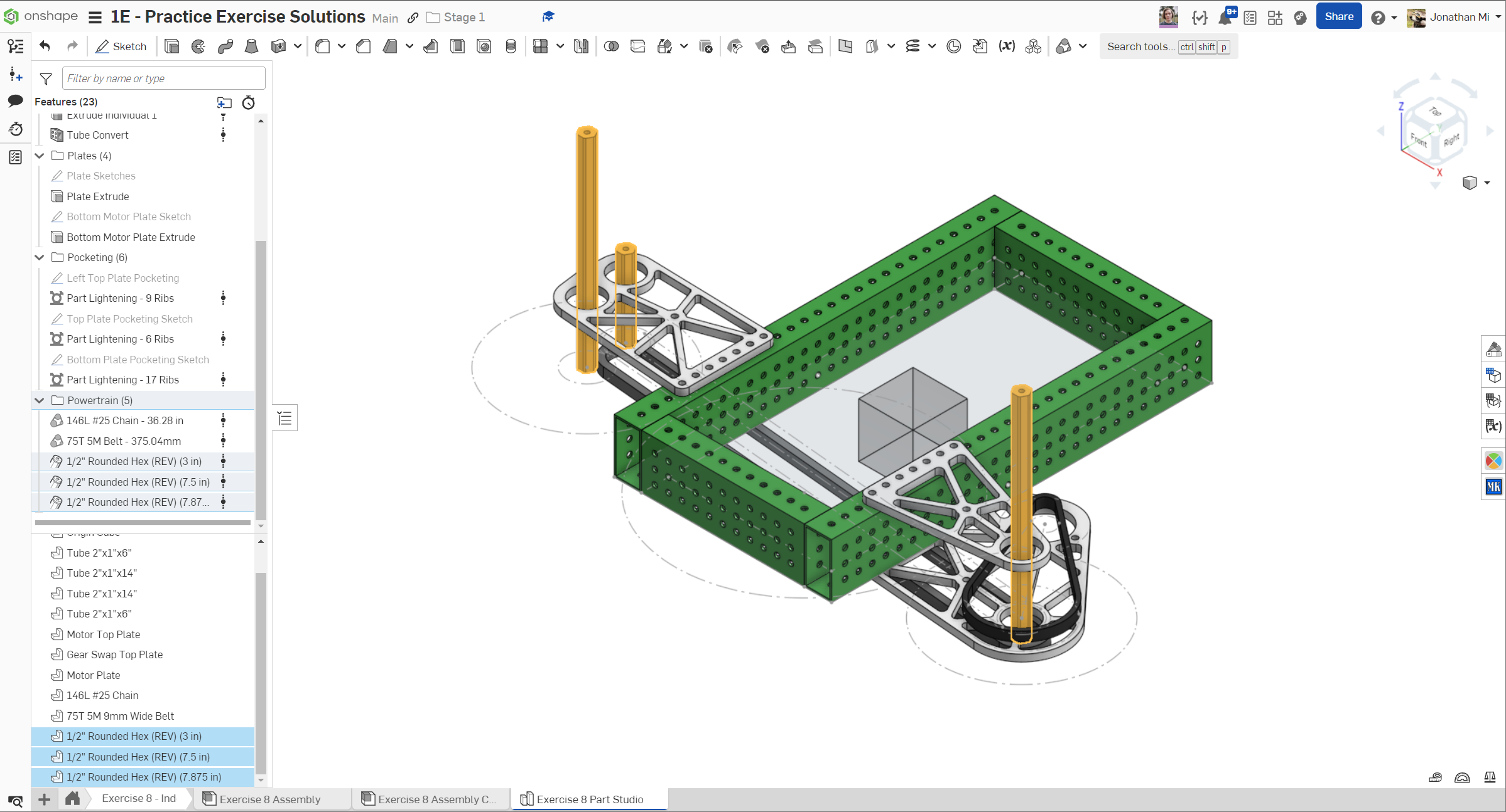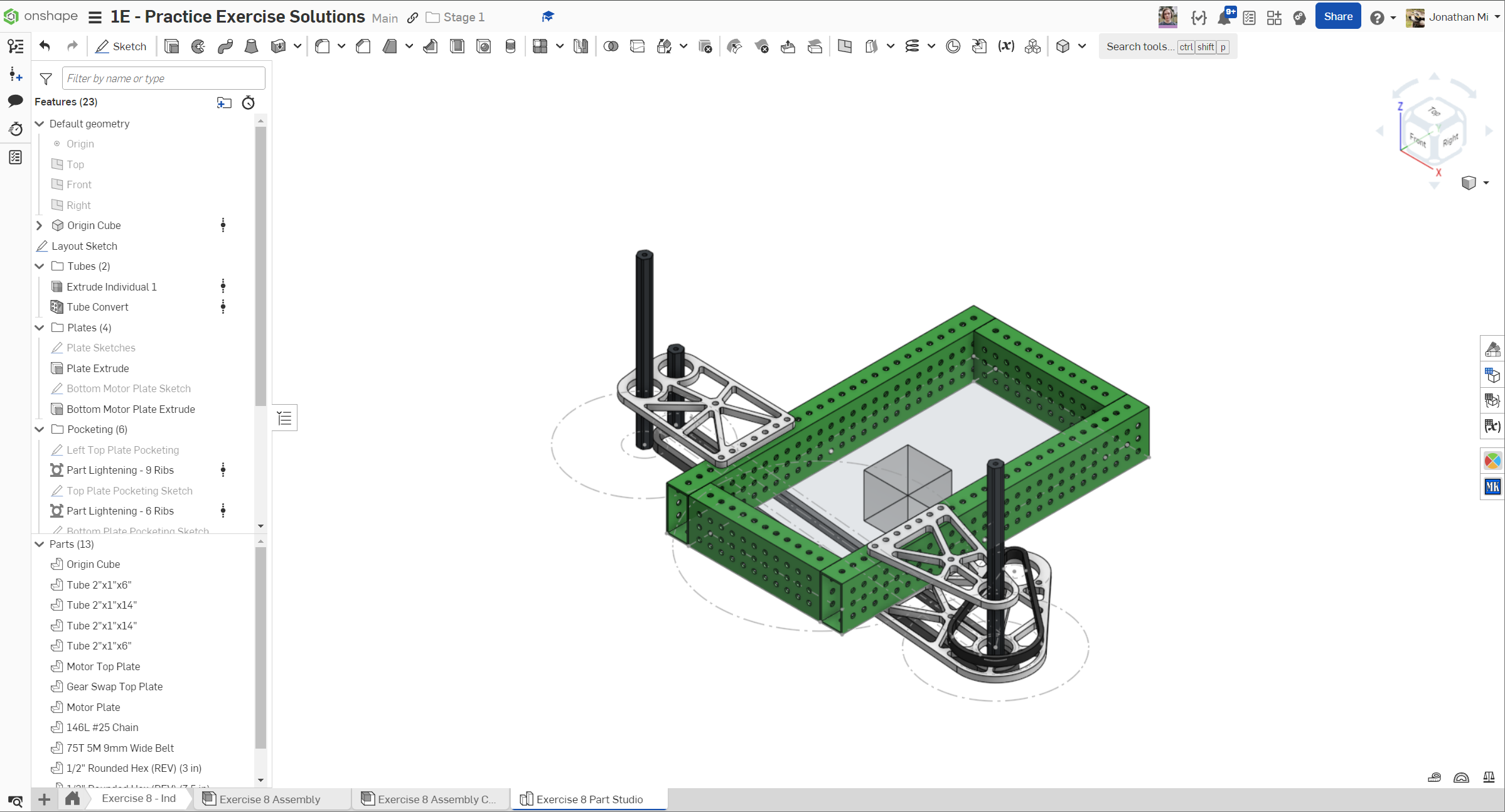 Navigate to the "Exercise #8 Part Studio" tab in your copied document and refer to the solution document to complete the part studio for this exercise. The following instruction slides only provide a general outline and some key details.