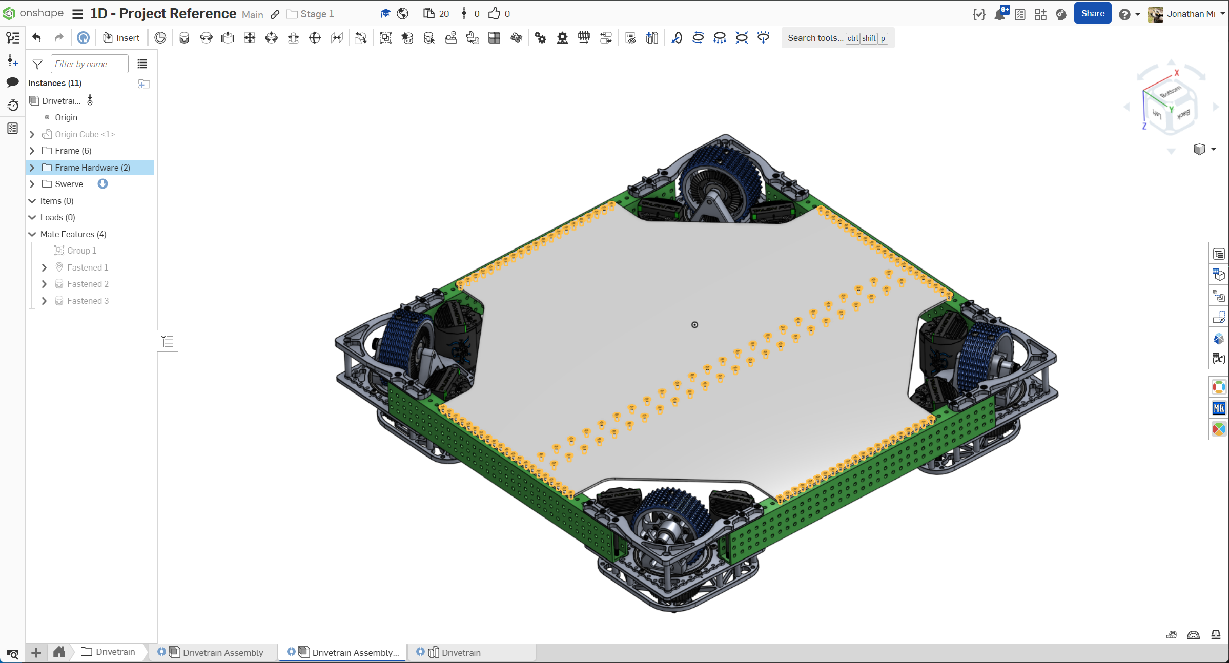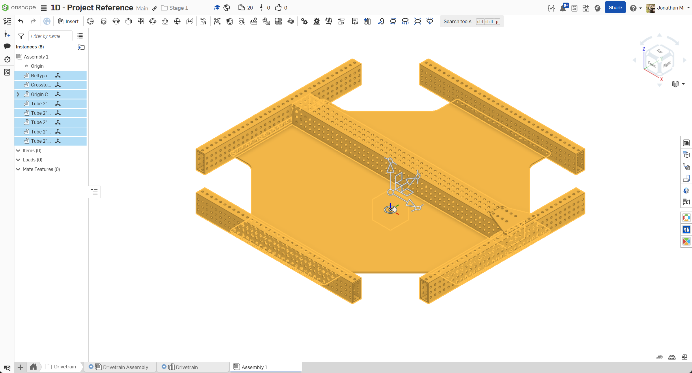 Now that the part studio is finished, you can create the drivetrain assembly.