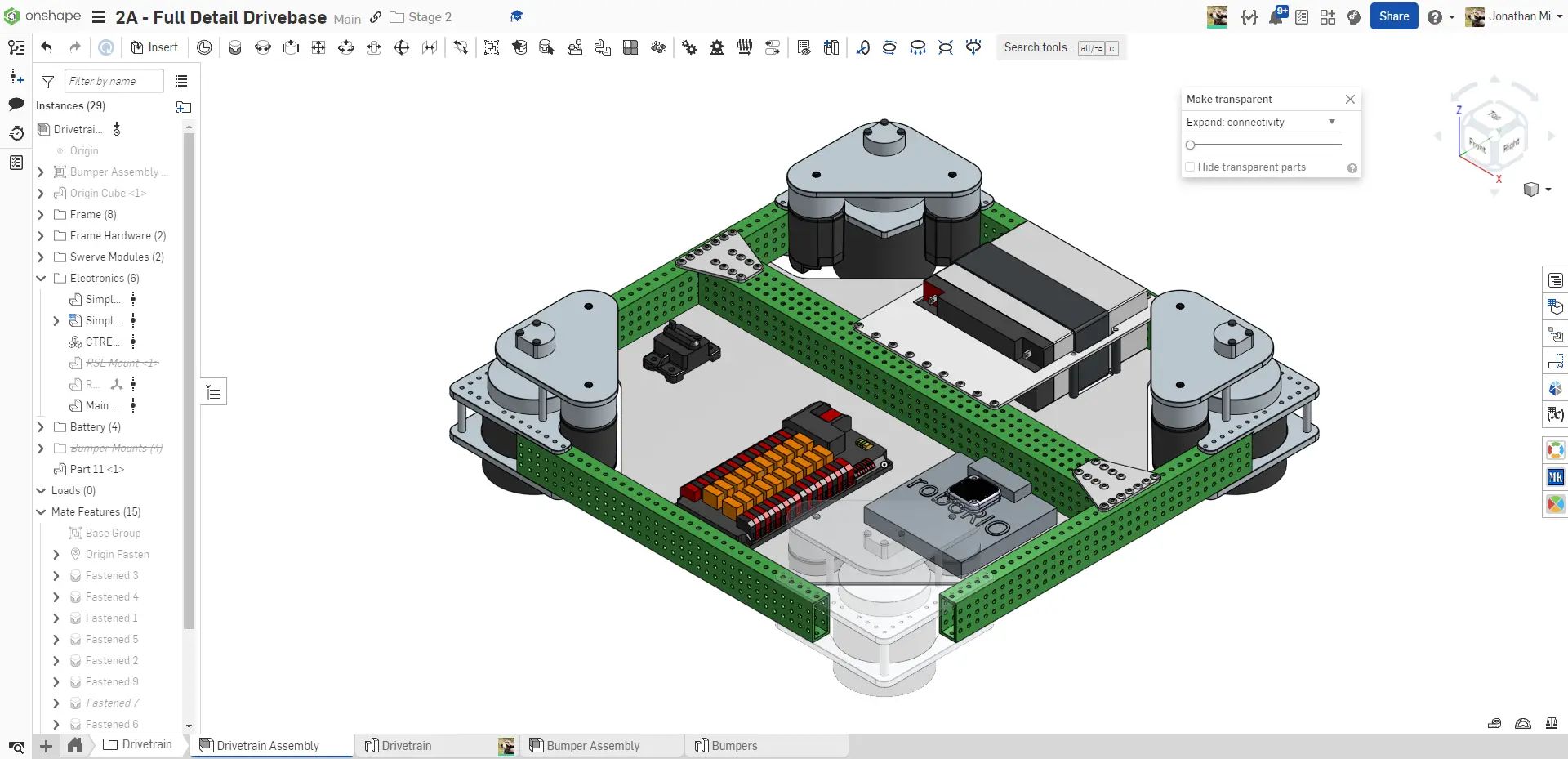 It is recommended to use the Simplified electronics models to improve assembly performance. You can read more about simplified models on the Assembly Best Practices Page. Simplified swerve module models can also be used to reduce lag.