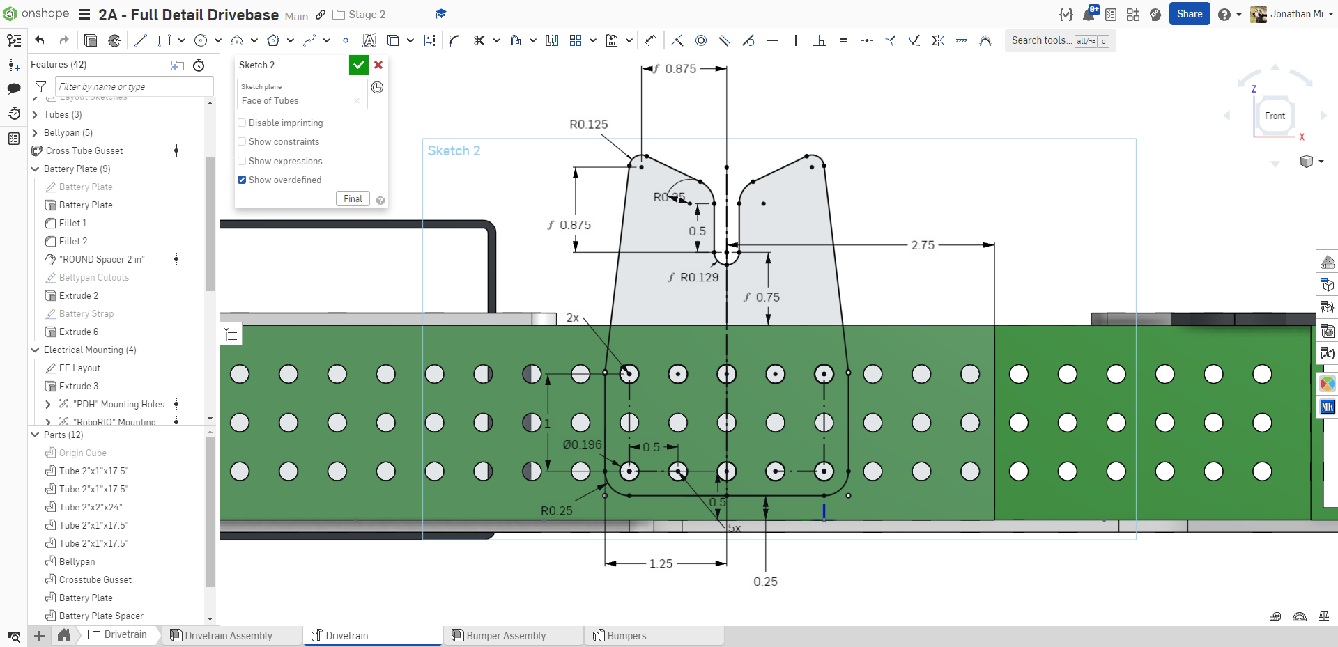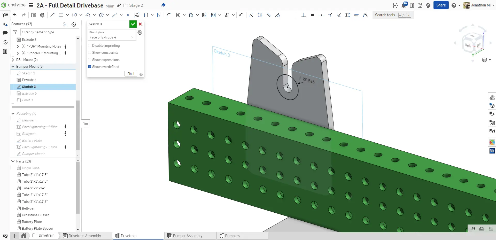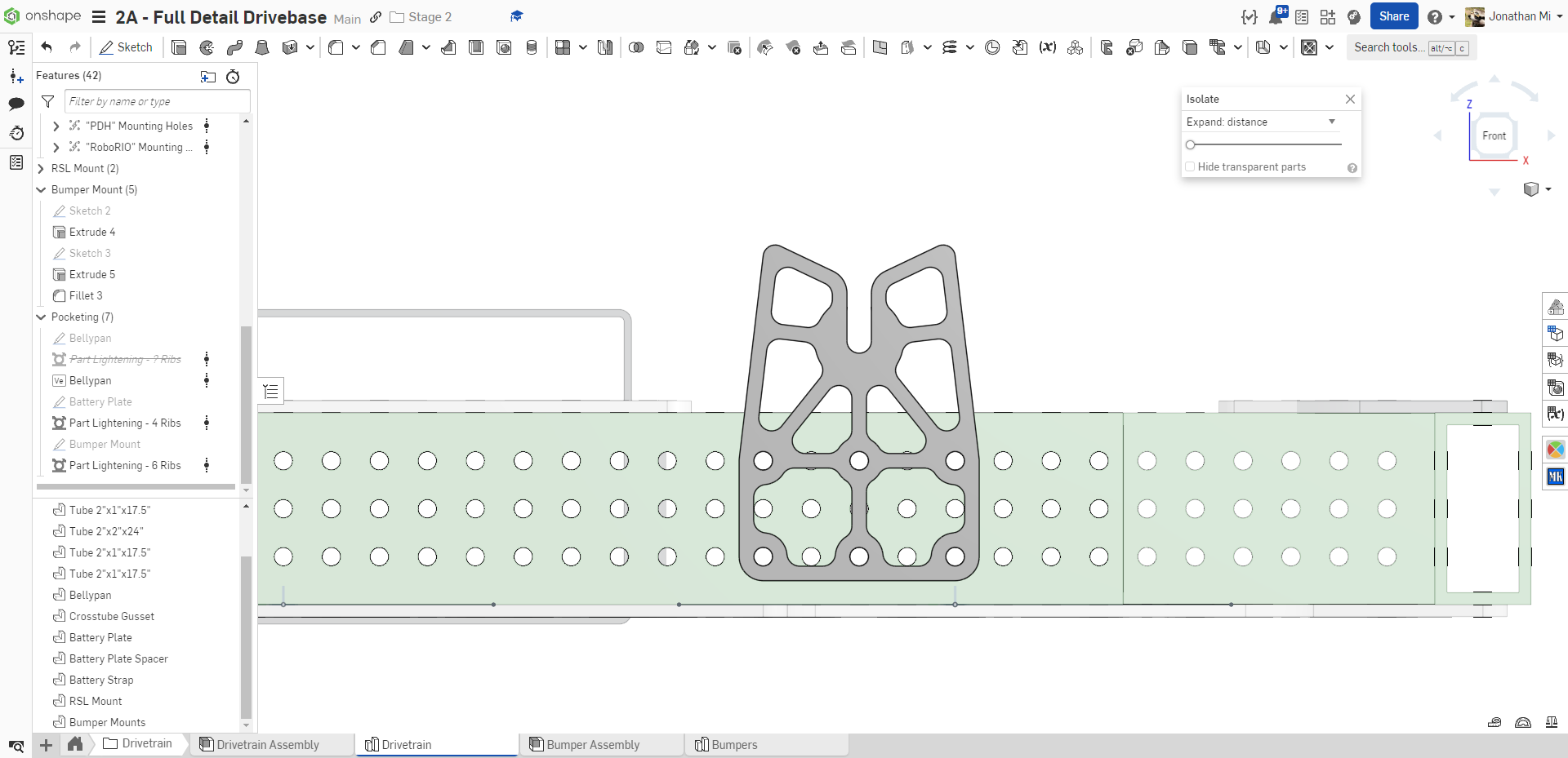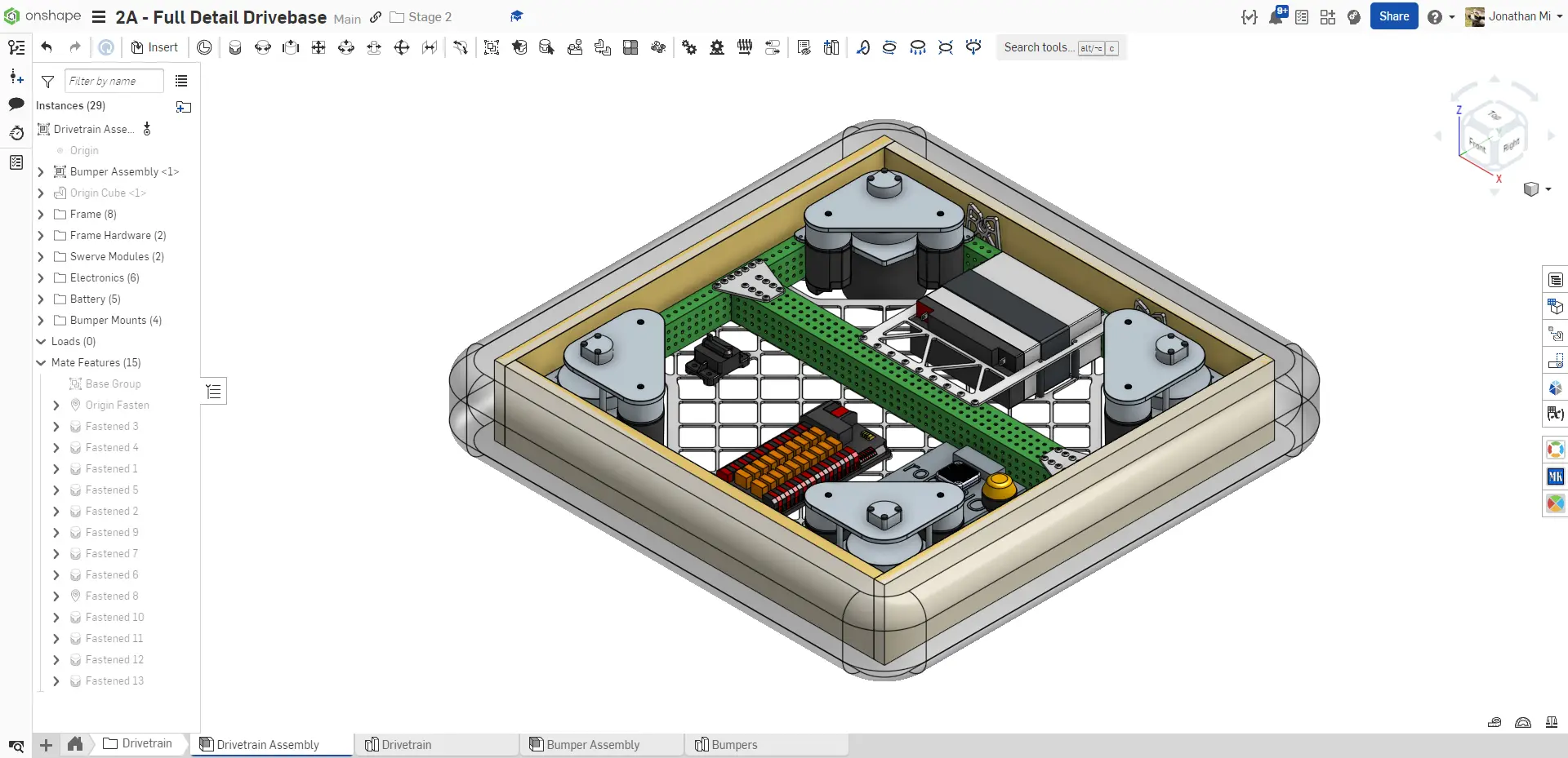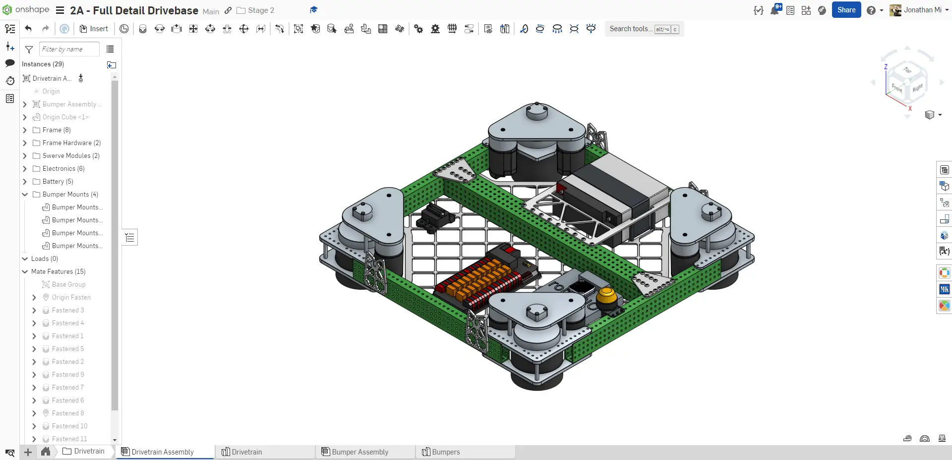 Add your desired bumper mounts to your drivetrain. You can take inspiration from the following instructions slides.