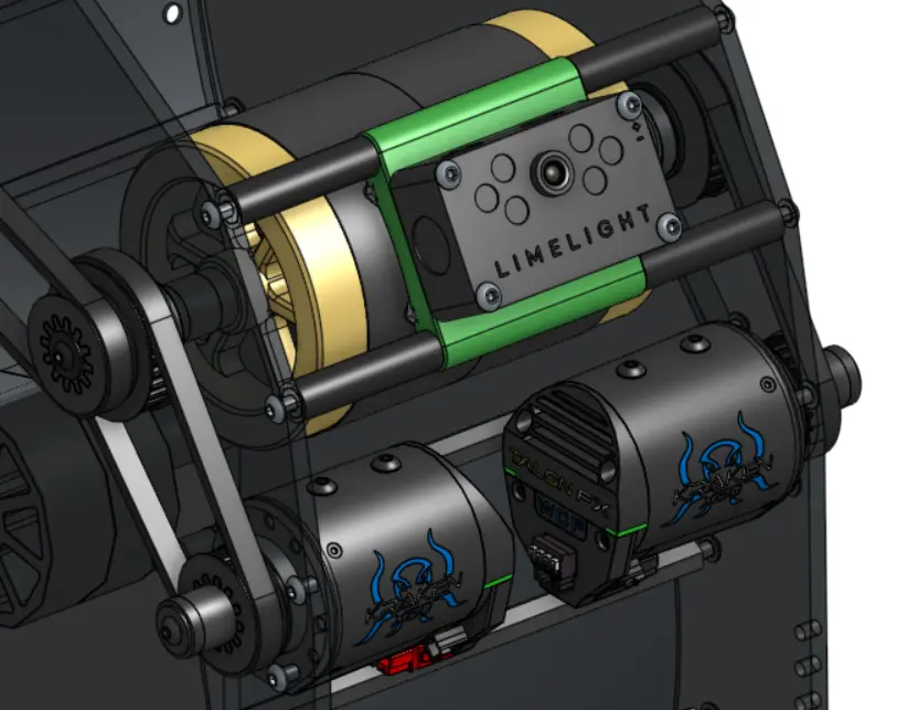 In the reference design, two Kraken X60 motors are employed, though any brushless CIM-class motor will suffice.