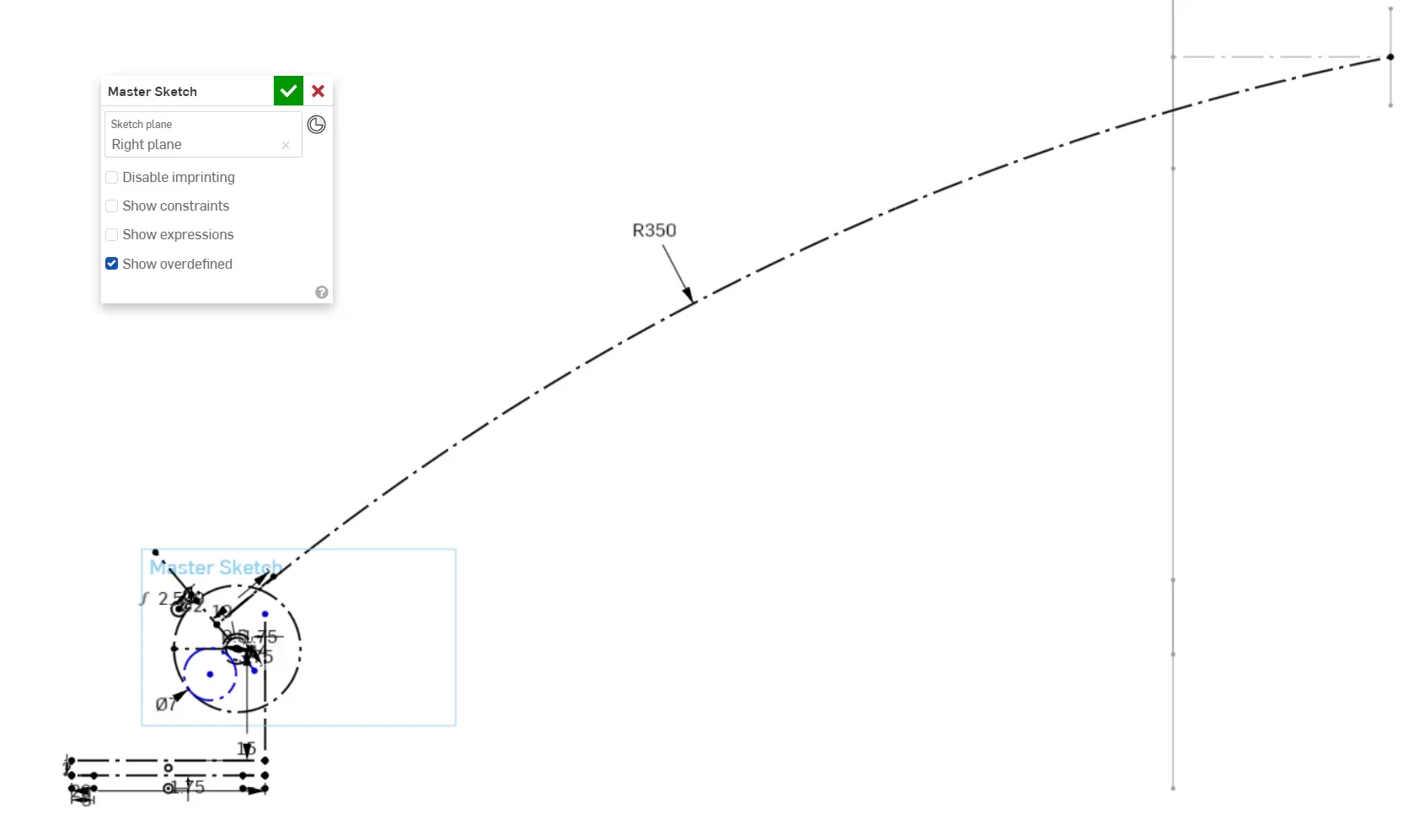 Now make sure all the geometry in the main layout sketch is fully constrained (black). Constrain any unconstrained geometry arbitrarily if you need to.
