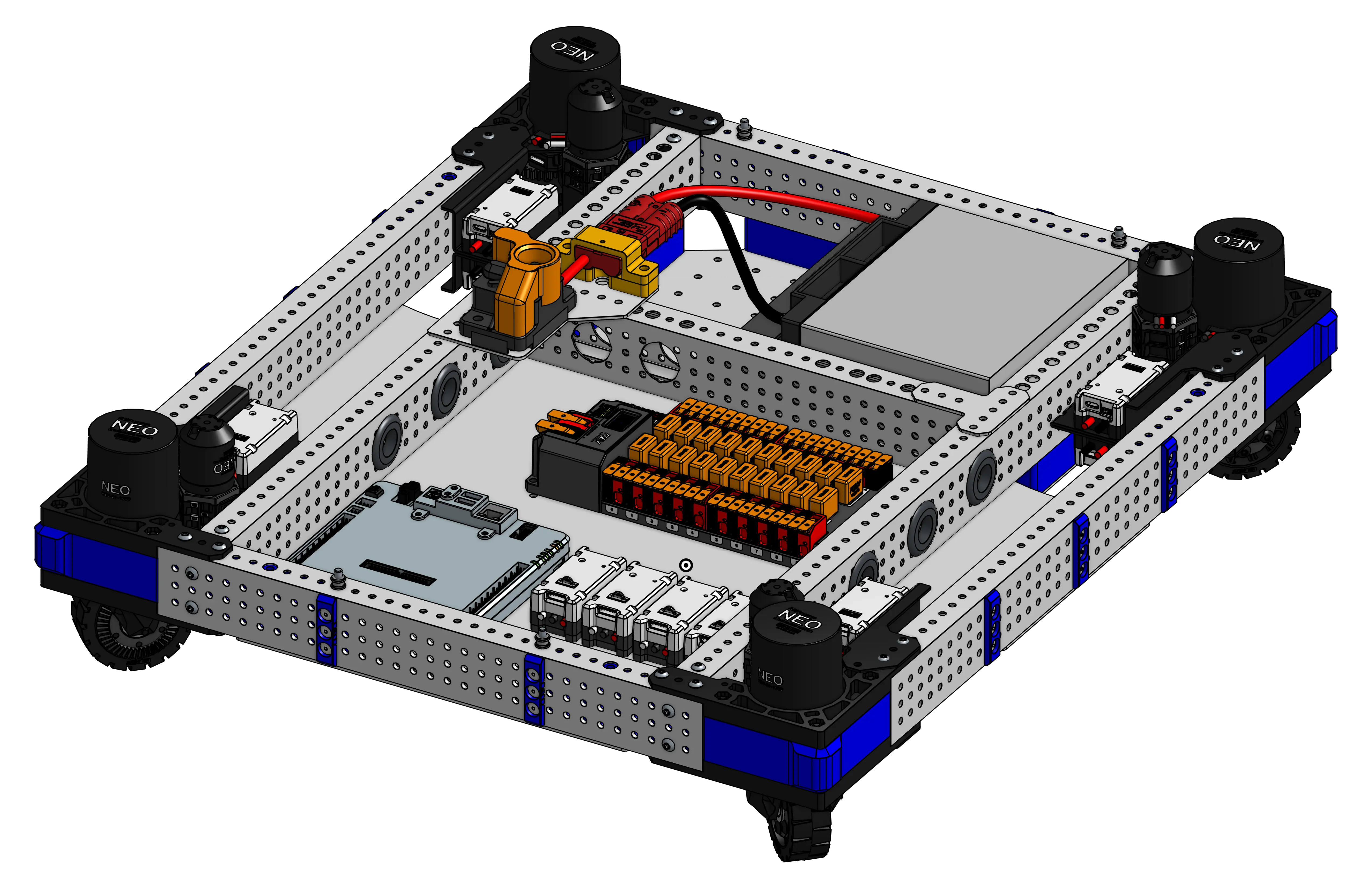 The drivebase is the single most important part of your robot, if you can't move, you can't score or play defense. All other mechanisms will also build on top of the drivebase. These examples can provide useful inspiration for electronics layout, bellypan design, and structural supports.